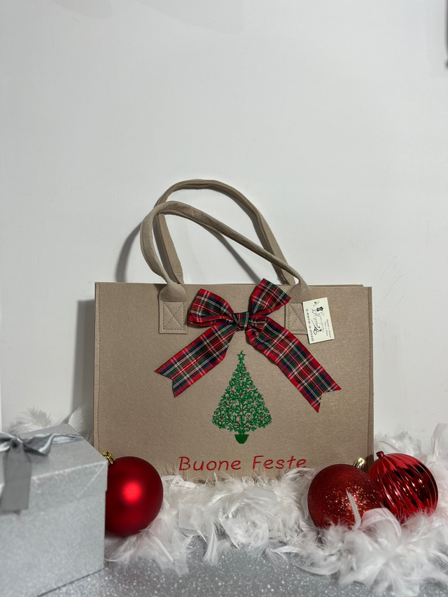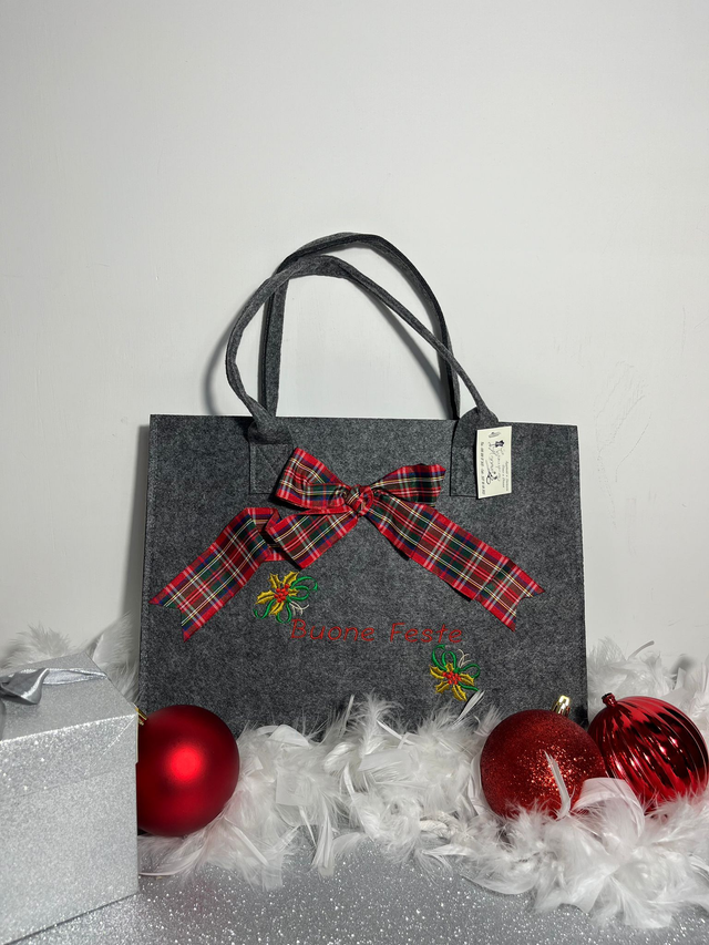 Scoprite il nostro assortimento di borse natalizie uniche e ricamate, perfette come regali speciali o eleganti porta regalo per le festività. Ogni borsa è un'autentica opera d'arte in feltro, arricchita da ricami esclusivi che catturano l'essenza del Natale in ogni dettaglio.